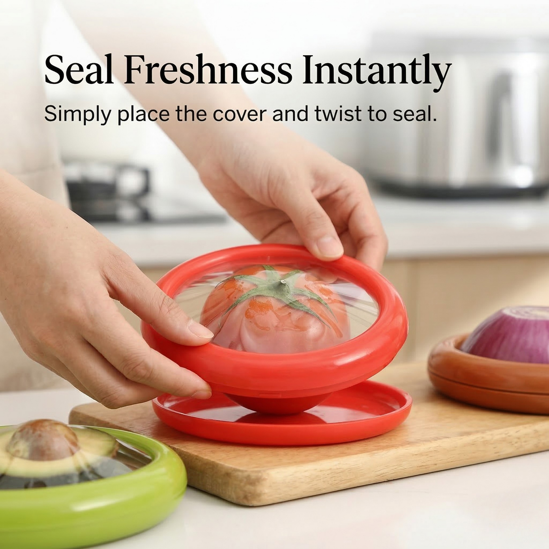 Seal cut fruit instantly • Reduce food waste • Store smarter