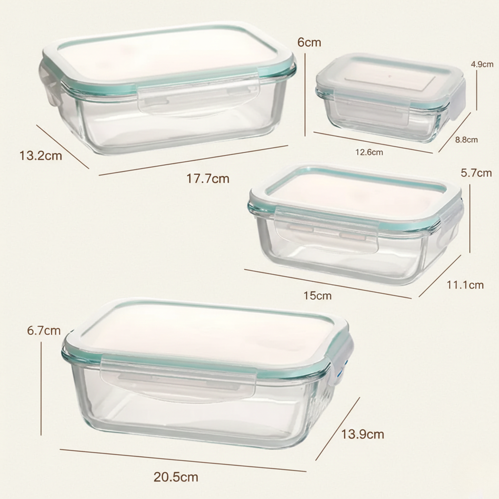 • Set Includes: 4 glass containers (4 different sizes)