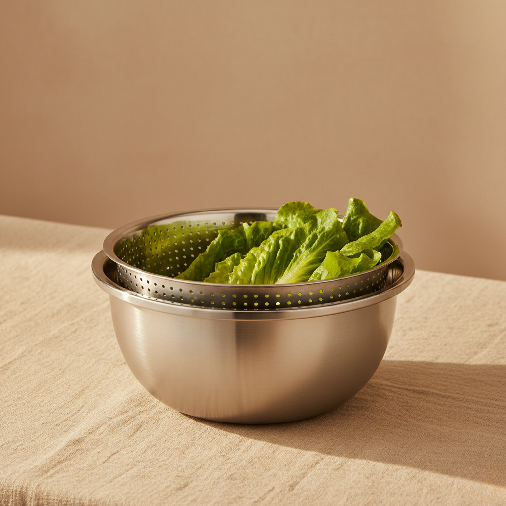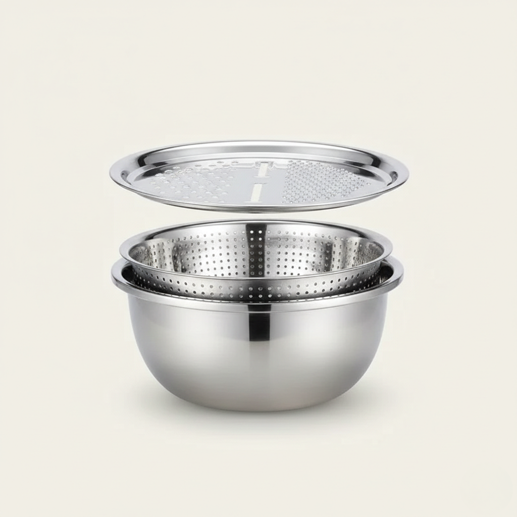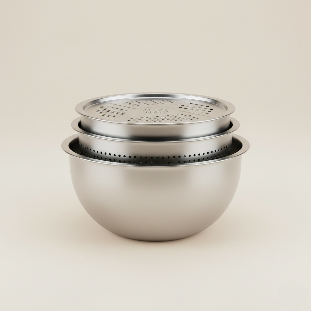 Use the colander to rinse vegetables and fruit, the bowl to collect drained water, and the grater attachment to shred or slice directly into the bowl. Designed to simplify prep without excess tools.